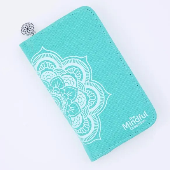 De blauwgroene kleuraccenten van de etuis en de accessoires zijn karakteristiek voor de KnitPro Mindful collectie