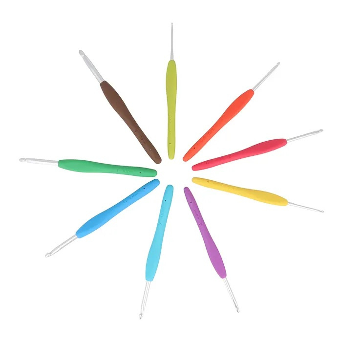 Elke haaknaald heeft een andere kleur zodat de diverse naalddiktes in een oogopslag zijn te onderscheiden.
